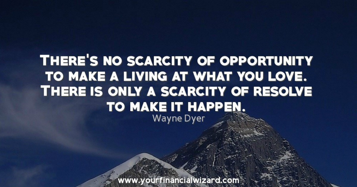 Saturday Quote – December 2, 2017 “There’s no scarcity of opportunity to make a living at what you love. There is only a scarcity of resolve to make it happen.” Wayne Dyer
